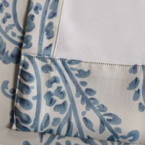 Gam màu xanh kết hợp hoa văn trắng dễ dàng phối hợp với nhiều phong cách nội thất, từ hiện đại đến cổ điển, giúp nâng tầm thẩm mỹ tổng thể mà không cần quá nhiều chi tiết cầu kỳ.