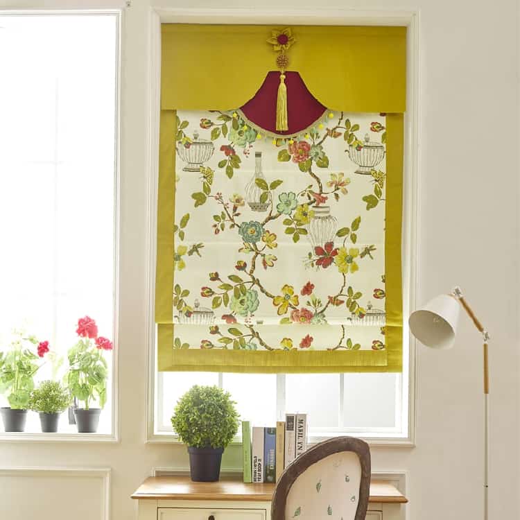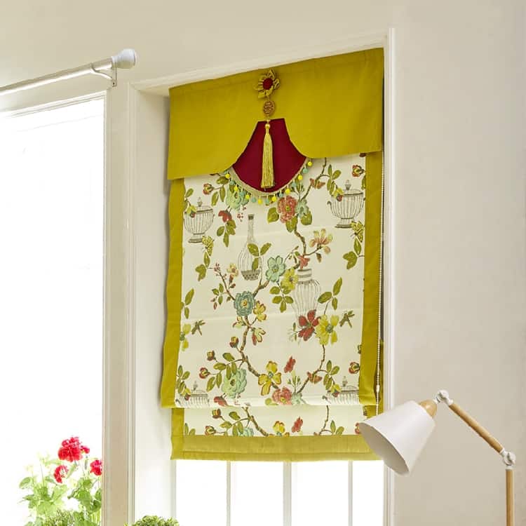 Rèm roman vàng thổ cẩm là mẫu rèm cửa mang vẻ đẹp ấm áp, nổi bật và giàu tính trang trí, kết hợp giữa thiết kế gọn gàng của rèm roman và họa tiết thổ cẩm truyền thống mang hơi hướng thủ công tinh tế.