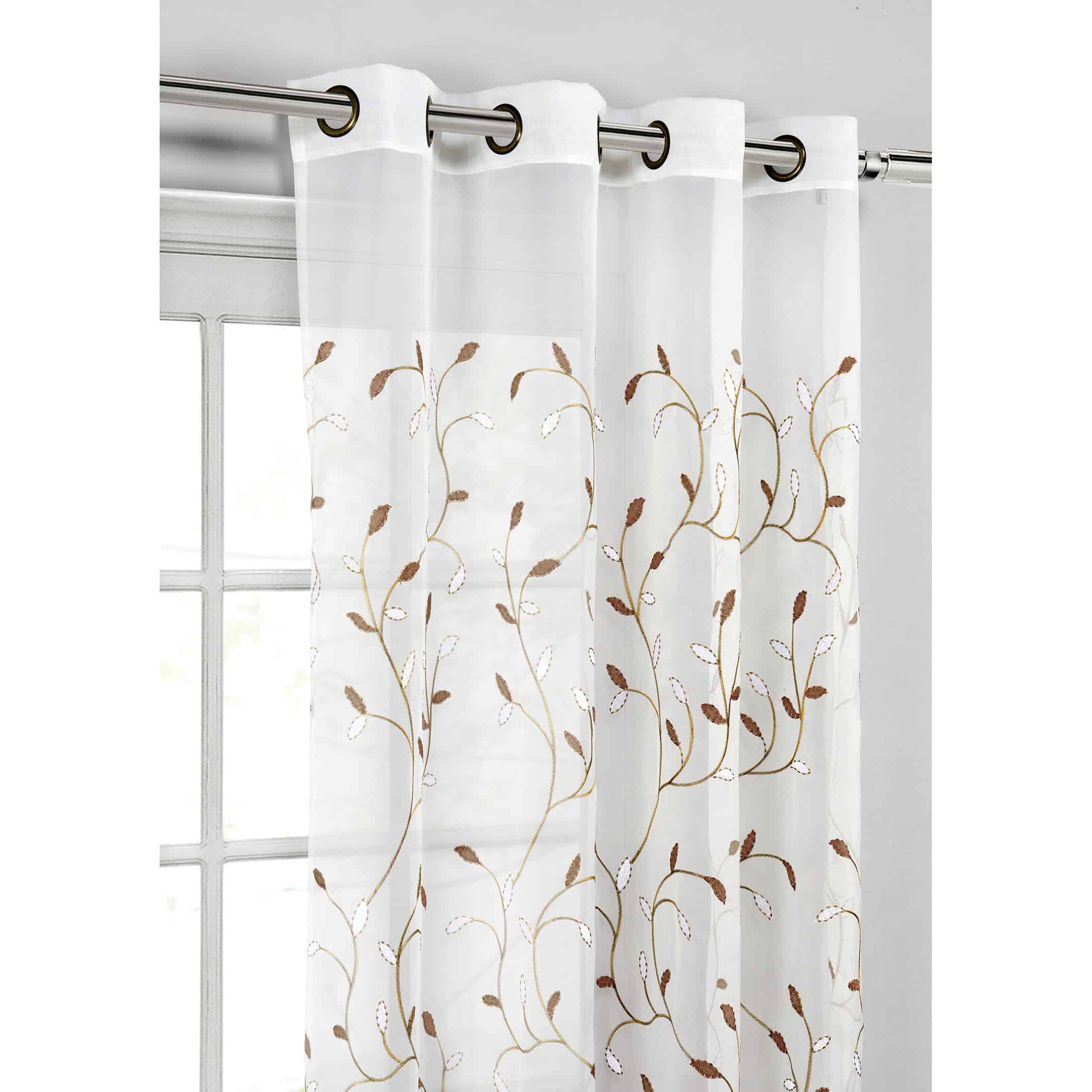 Rèm voan trắng thổ cẩm lá nâu đen – độc đáo, tinh tế và đầy chiều sâu